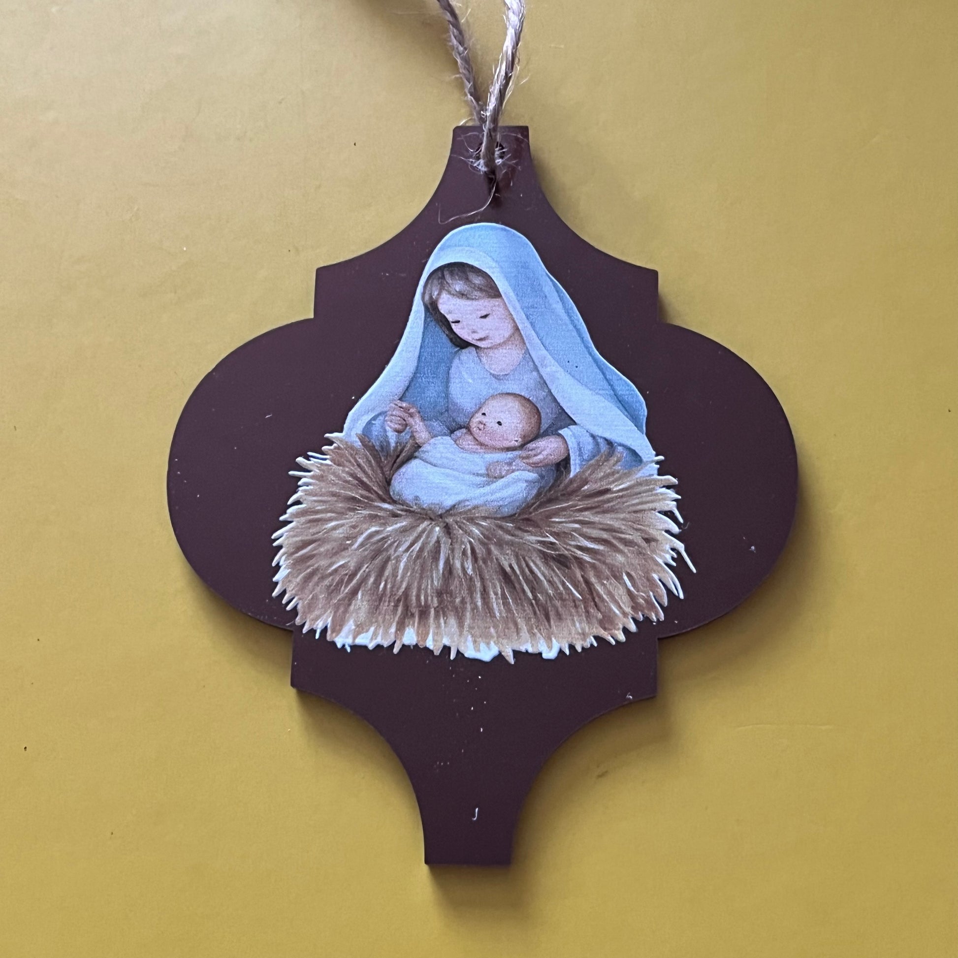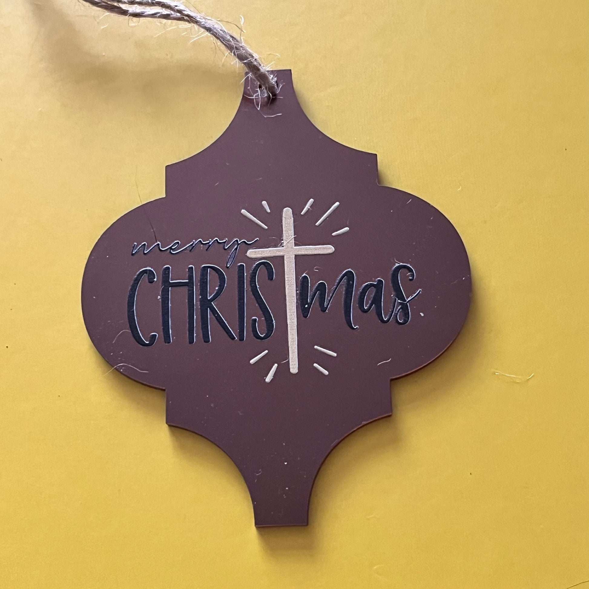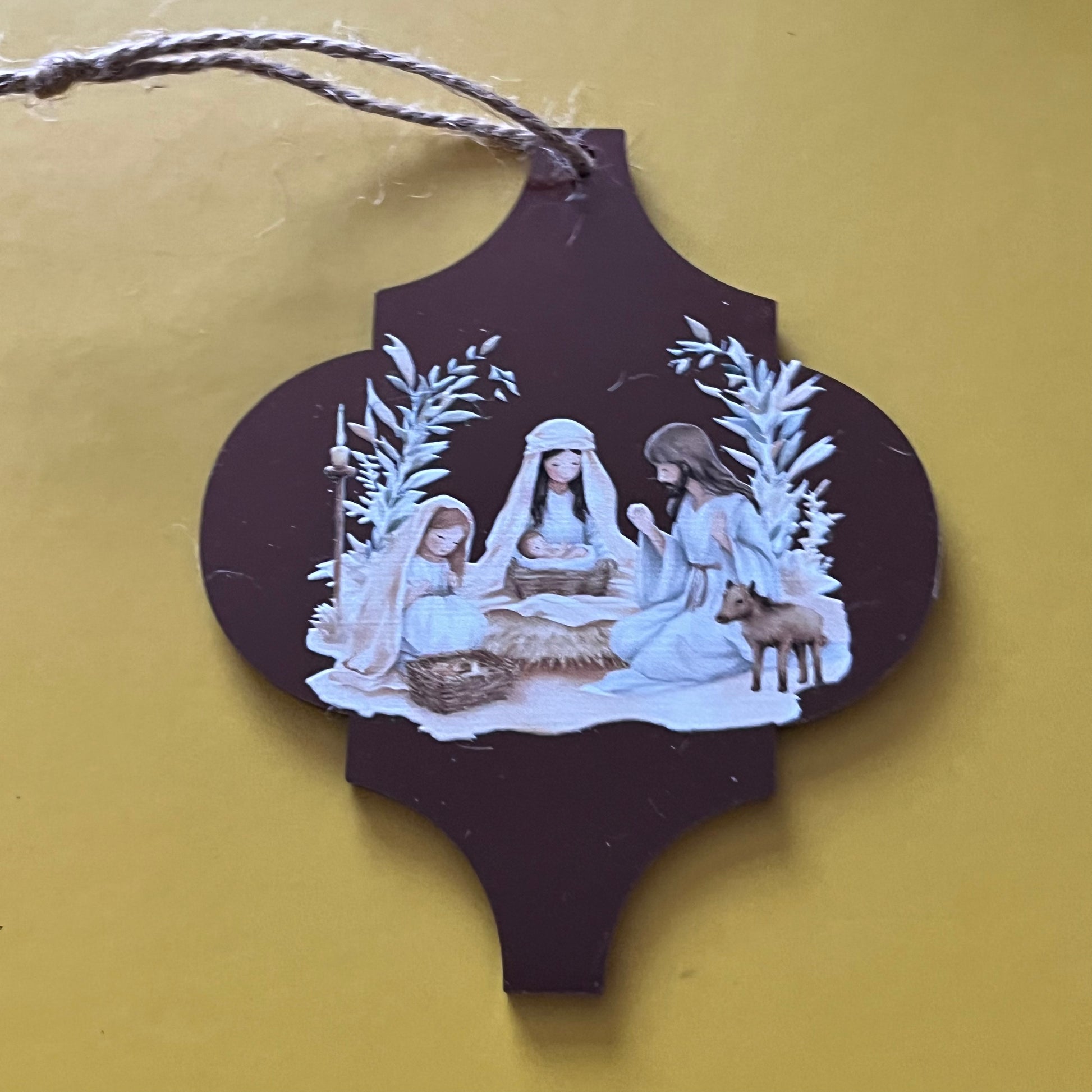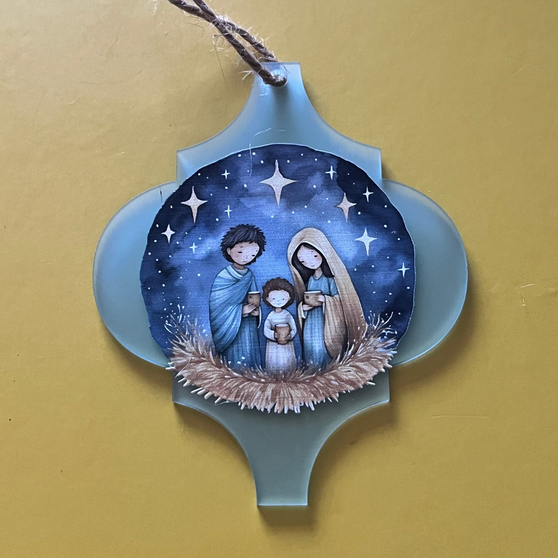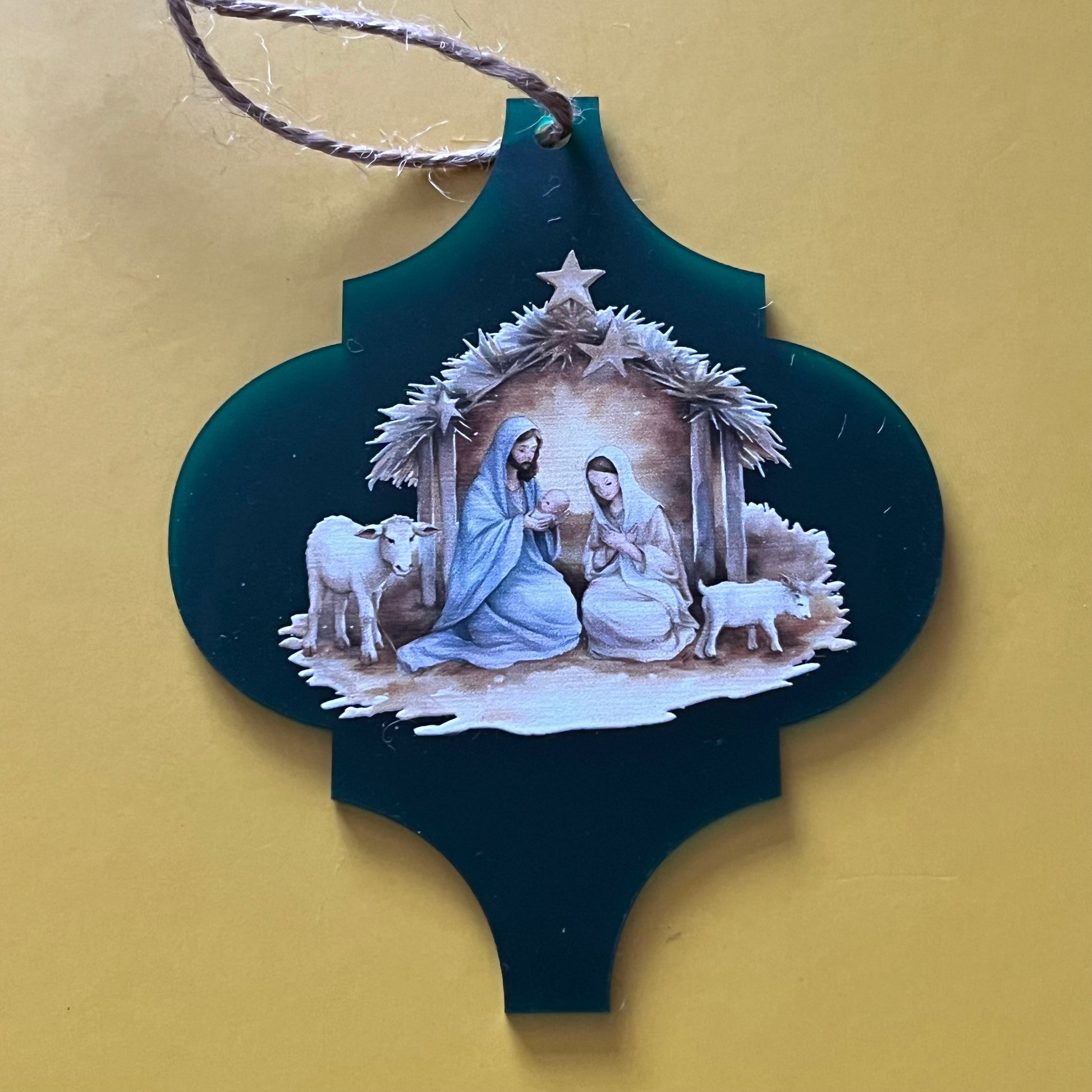 These acrylic Arabesque shaped tree decorations feature a series of Christian faith based images. They measure approx 100x125x2mm.