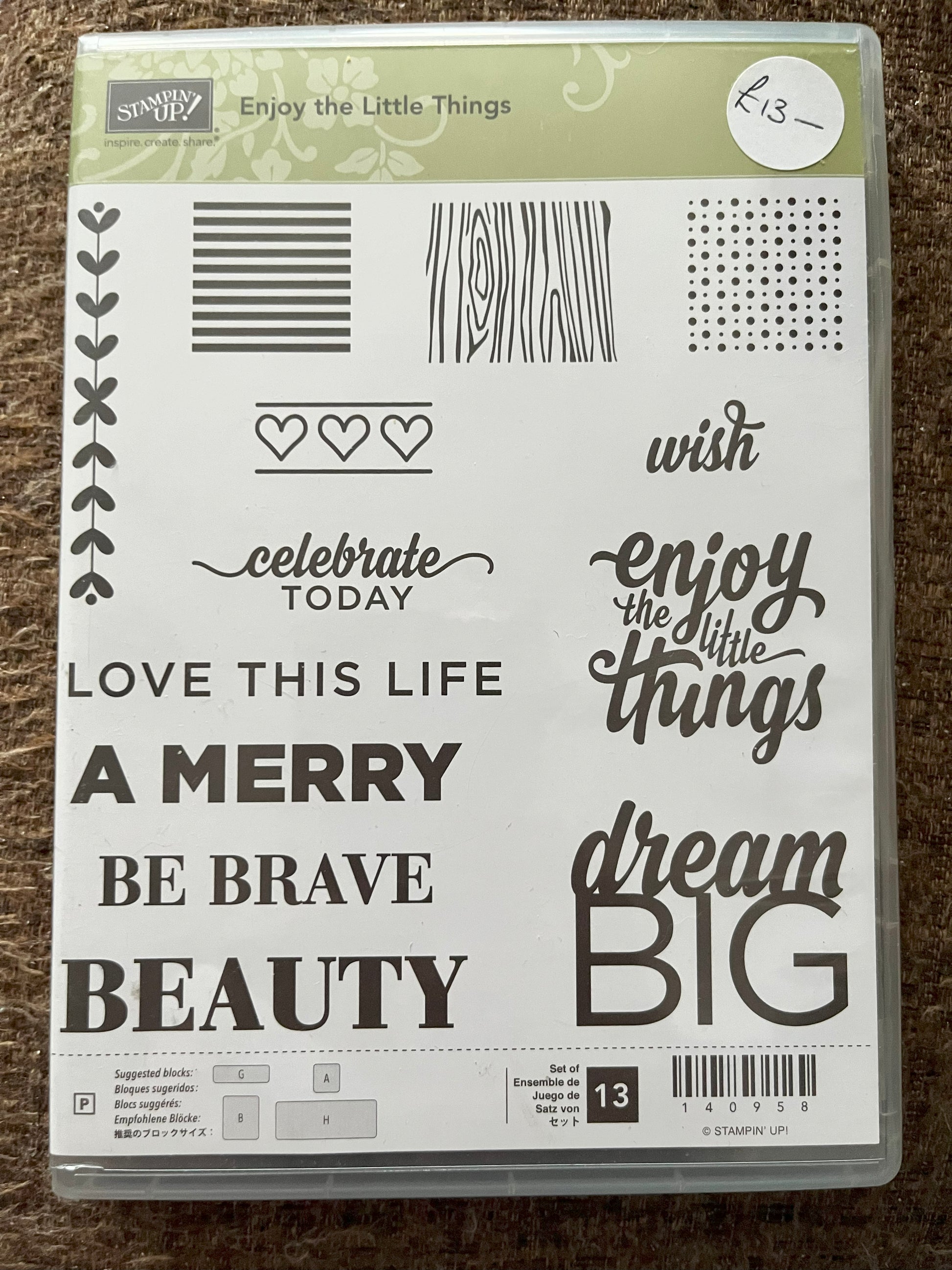 A set of 13 stamps - 5 picture and 8 sentiment stamps.