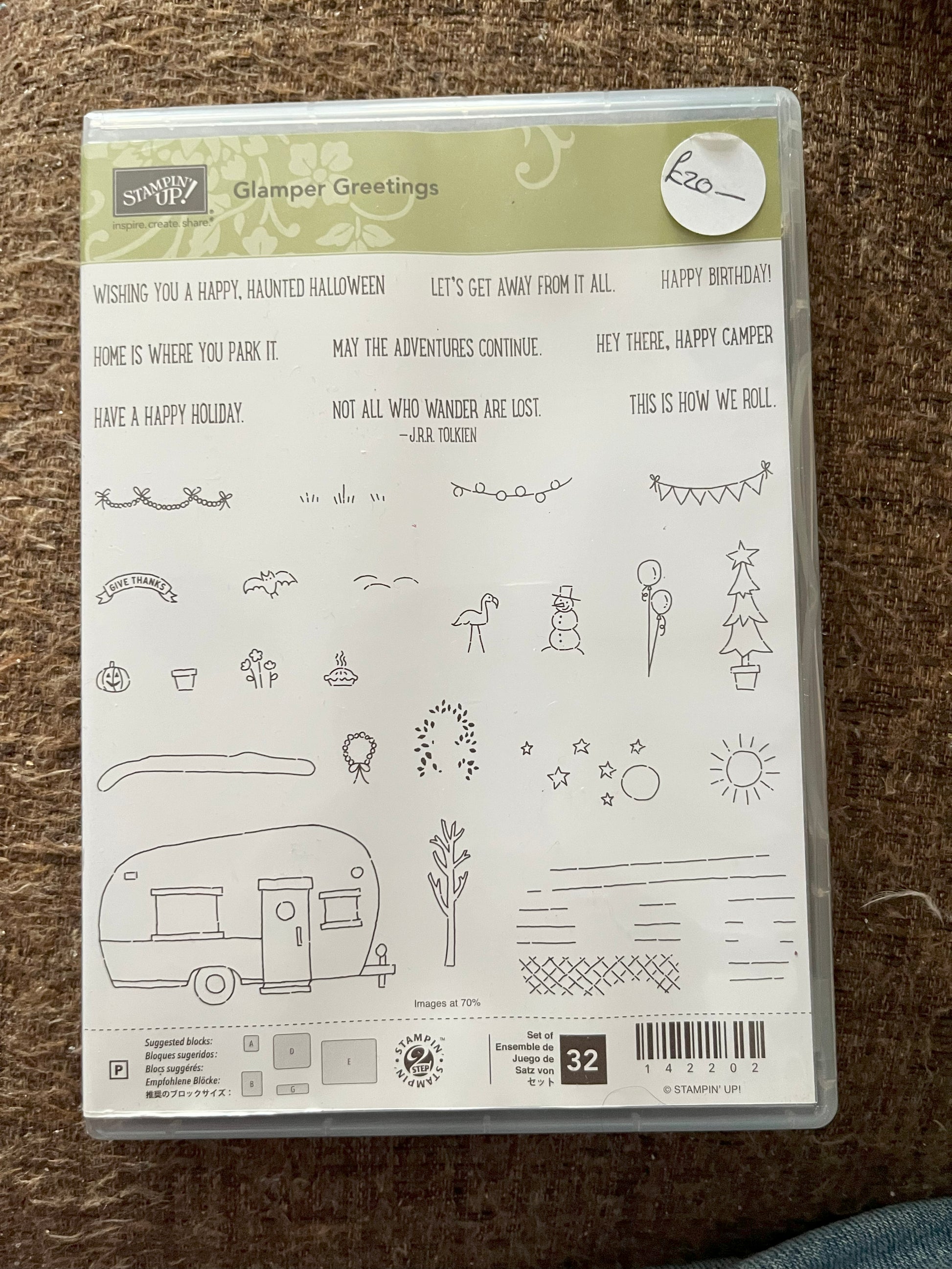 A set of 32 stamps - 23 picture stamps and 9 sentiment stamps (please ignore the price sticker in the photo).