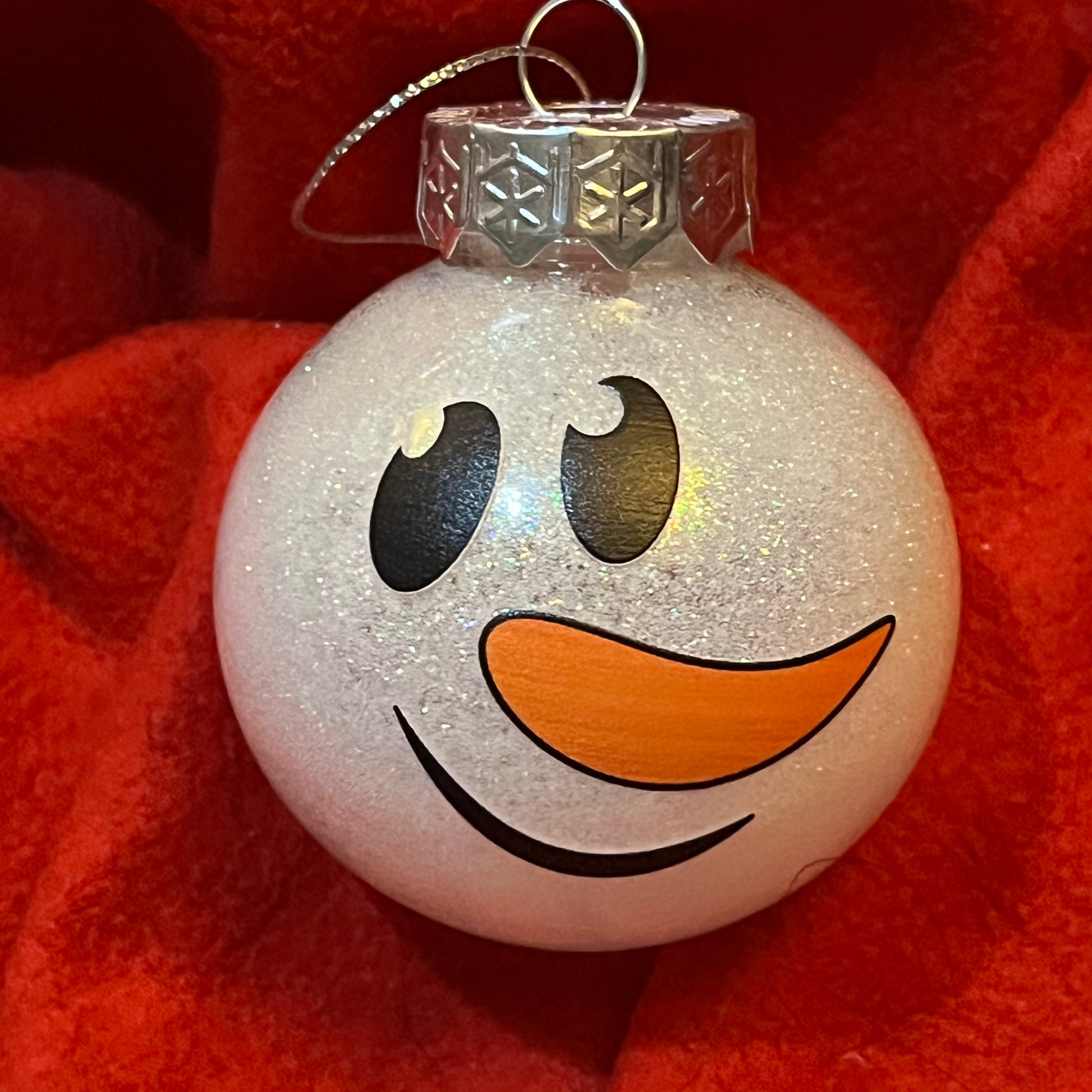 These plastic baubles are glittered inside with decoration adhered to the outside. They measure approx 6cm.