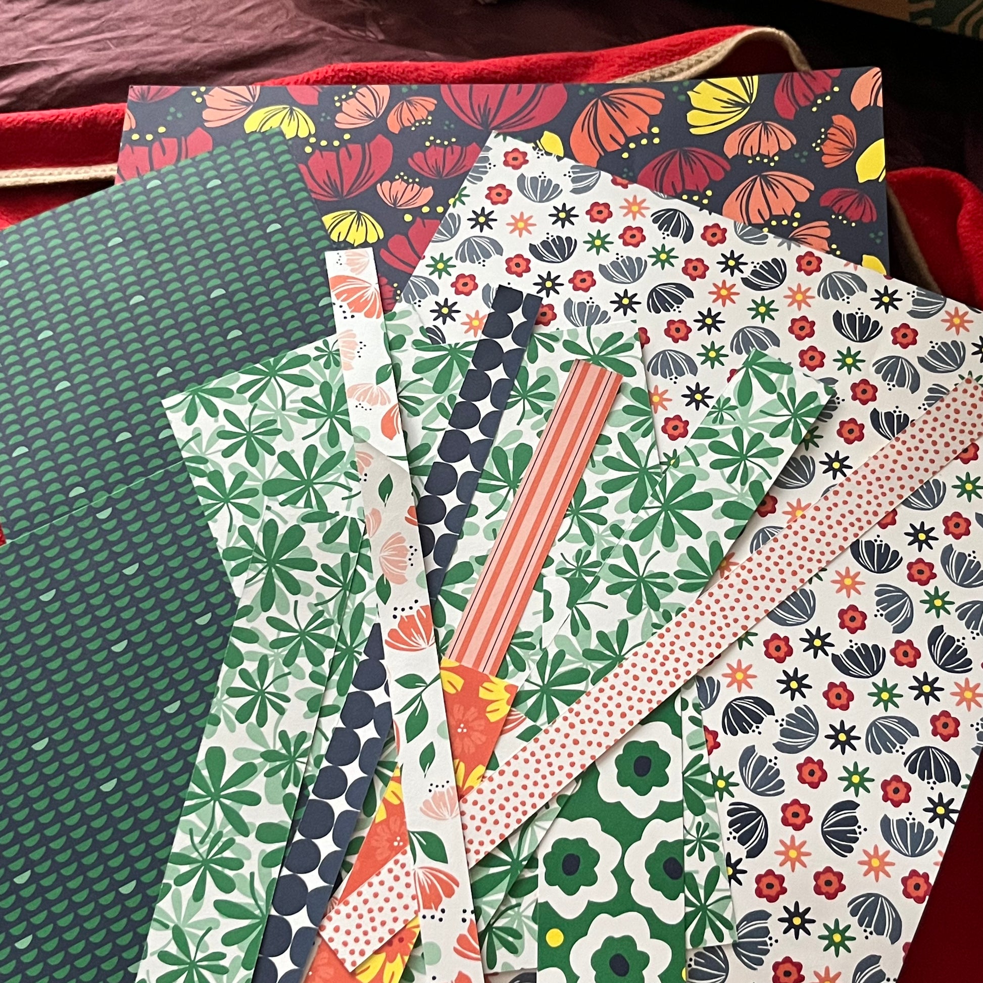 One full double sided 12x12 sheet of DSP with a selection of scraps in assorted sizes from the Happiness Blooms Suite.