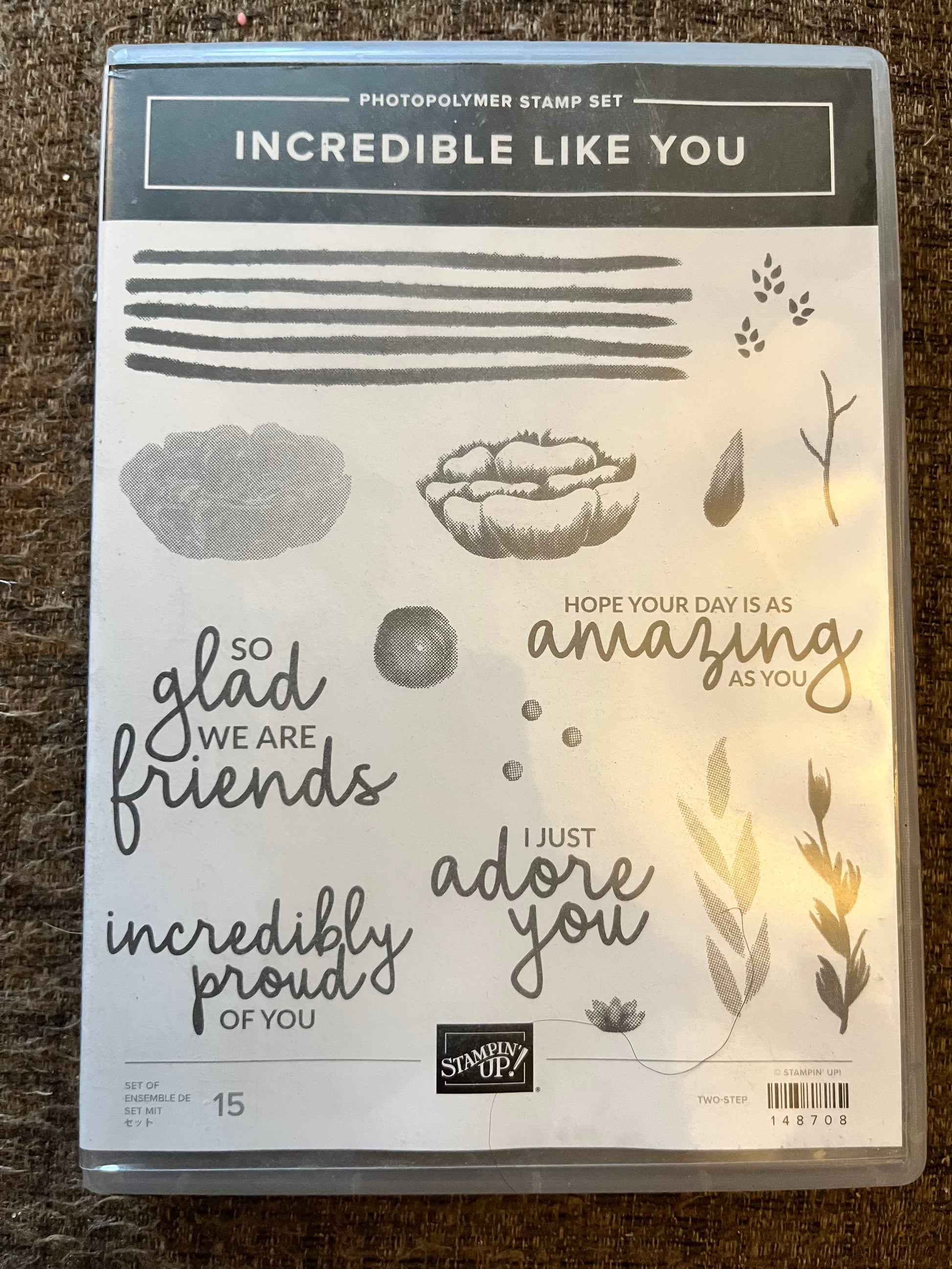 A set of 15 stamps - 11 picture (which includes 3 pairs for two step stamping) and 4 sentiment stamps.