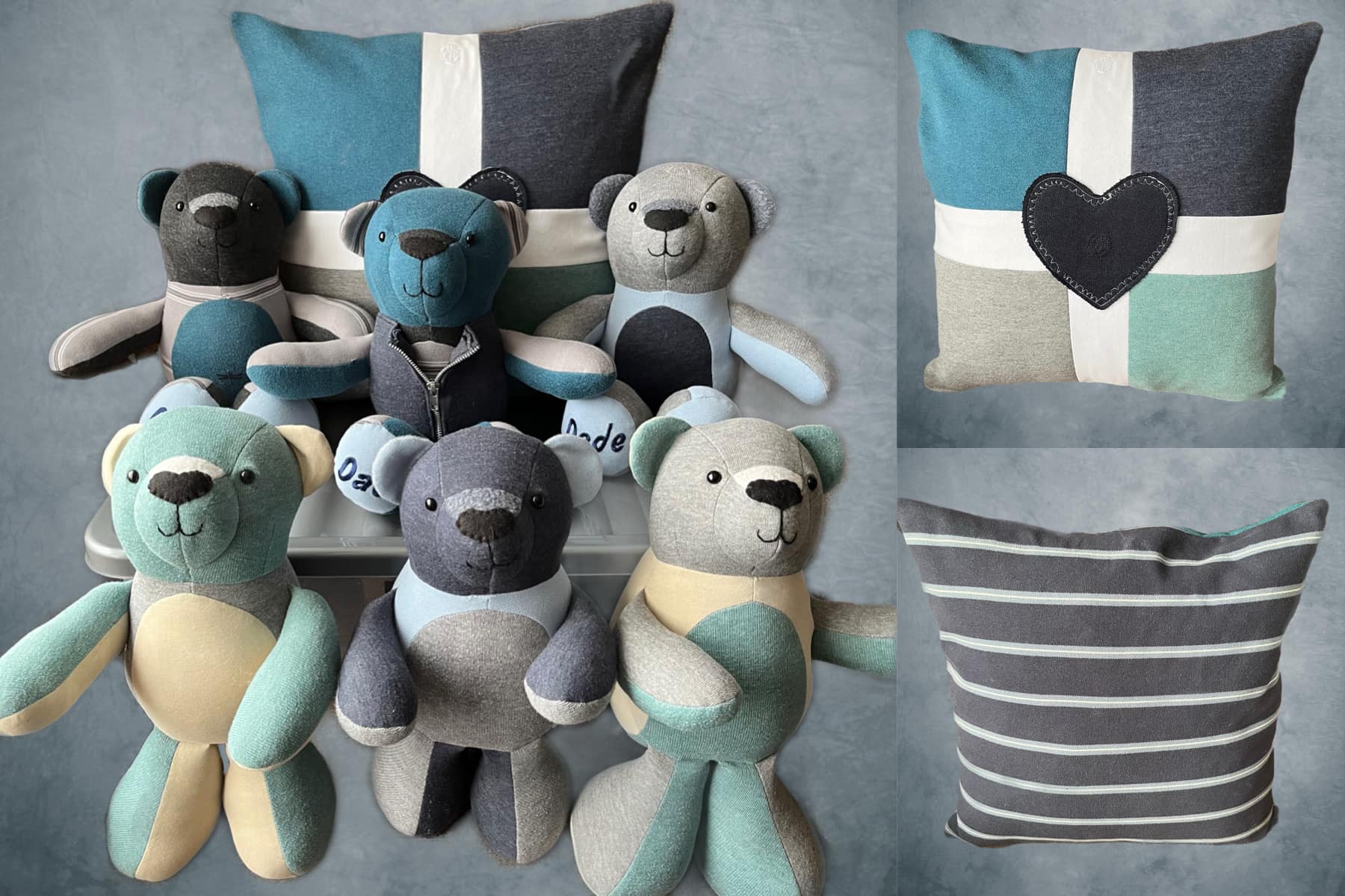 Our Keep Me Keepsake Memory Bear is an ideal design for two to four items of clothing. Embroidered personalisation can be added to the front tummy panel or feet to make your bear truly unique. It is possible to add the zip from a jacket or hoodie as an additional option - use the drop down options to add this if required. The Keep Me Keepsake Bear measures approx 12" (30cm) seated and 18" (45cm) from the bottom of the feet to the top of the head in the large size and 10" (25cm) seated and 16" (40cm) 'standing' n the small size (please note that although the legs move,. this bear cannot actually stand).