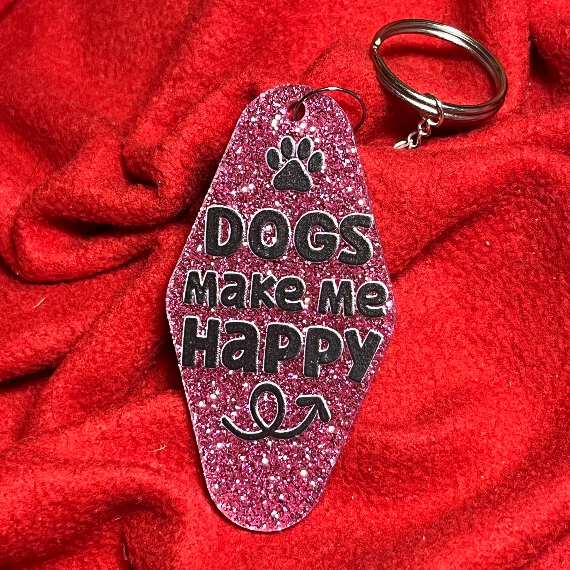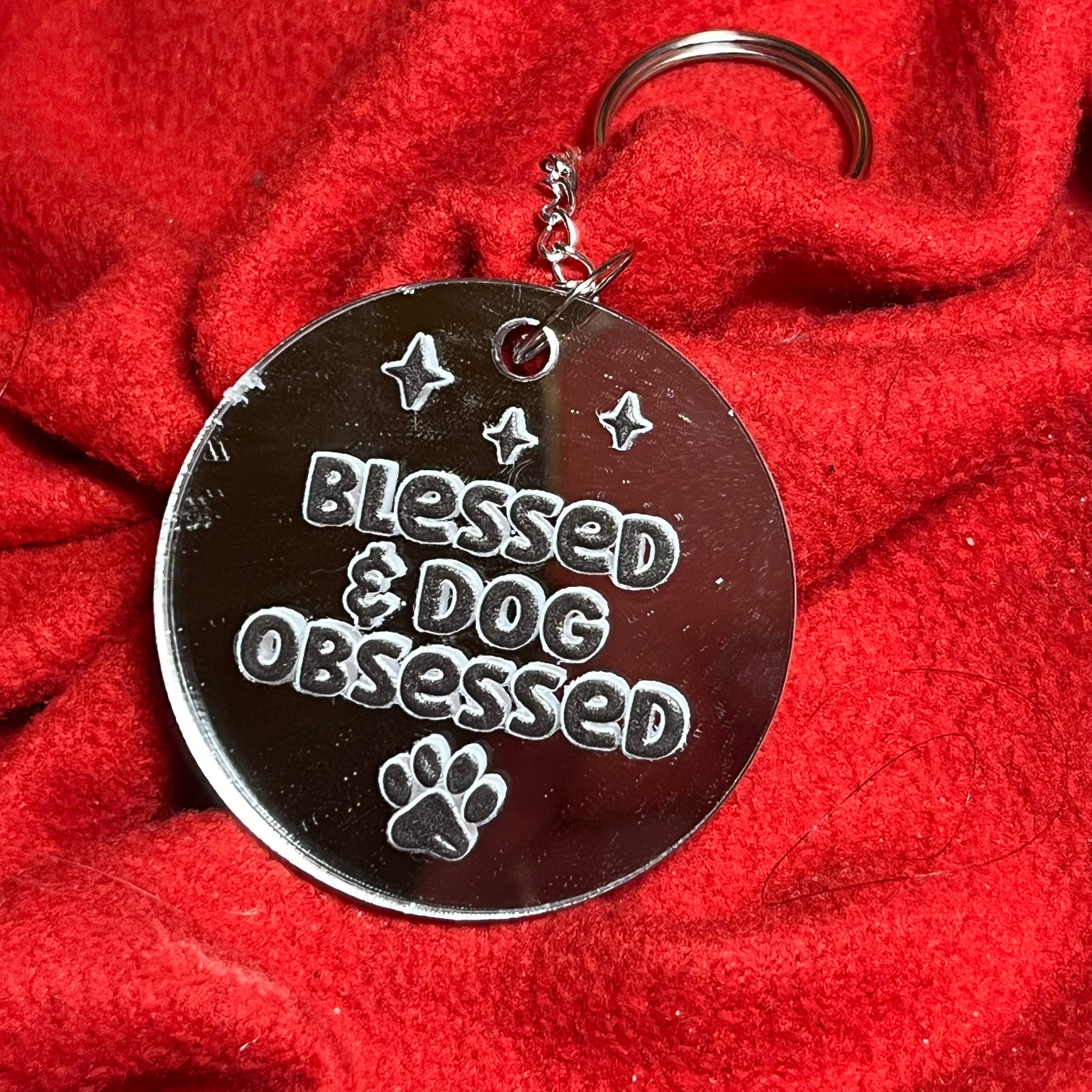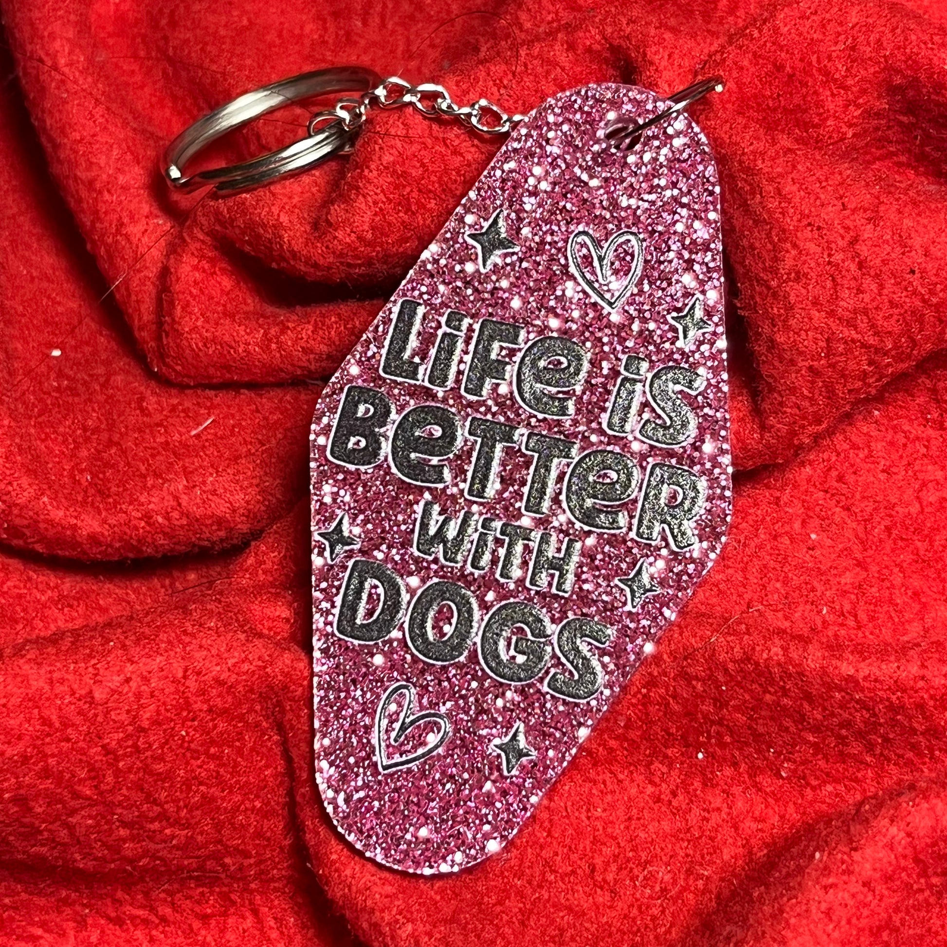 Each of our Dogs Range Keyrings features a dog related quote and comes on either a 5cm circle or 7.5cm x 4cm Motel Keyring shape of acrylic or wood on a short chain, either with or without a leather effect tassel.