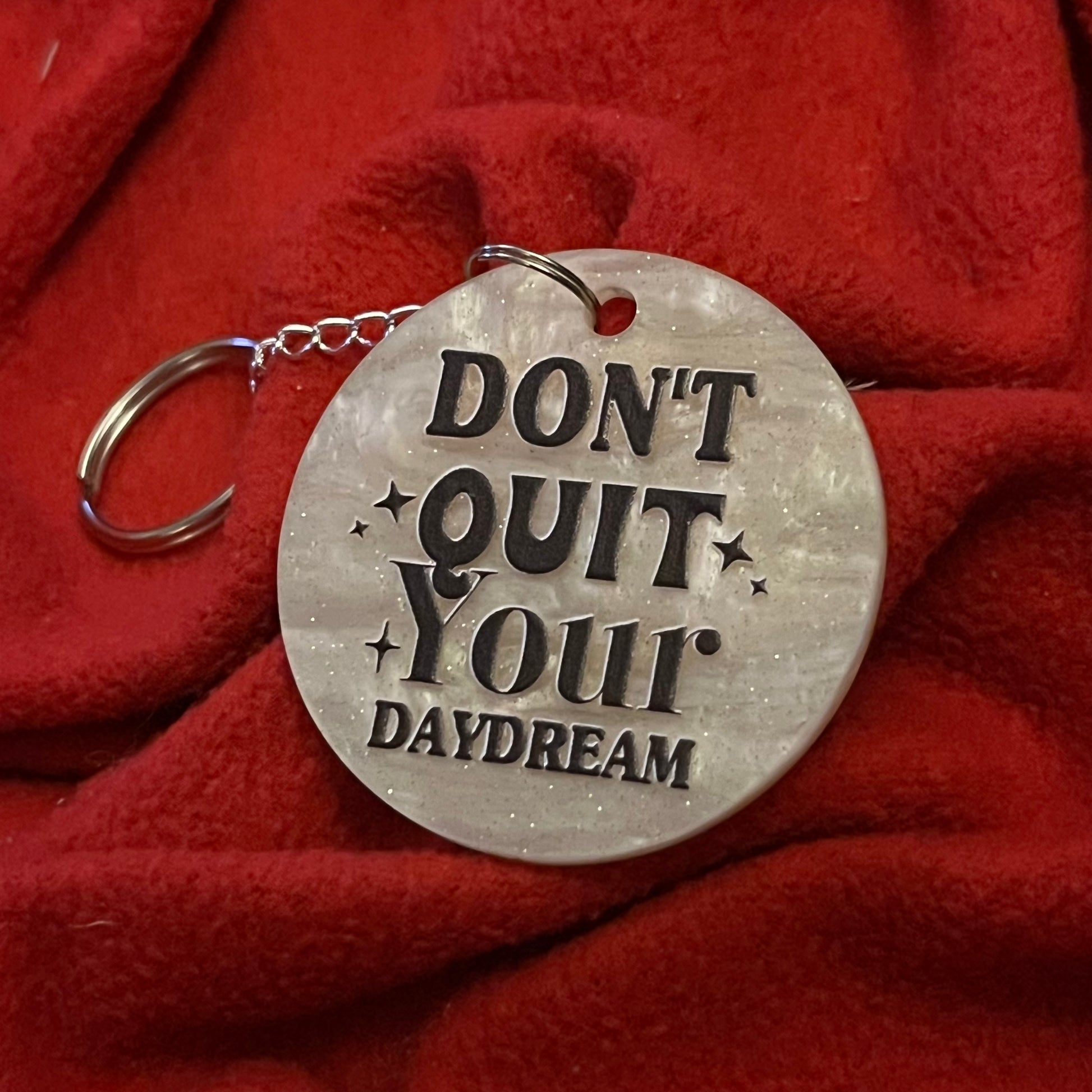 Each of our Inspirational Range Keyrings features a related quote and comes on either a 5cm circle or 7.5cm x 4cm Motel Keyring shape of acrylic or wood on a short chain, either with or without a leather effect tassel.