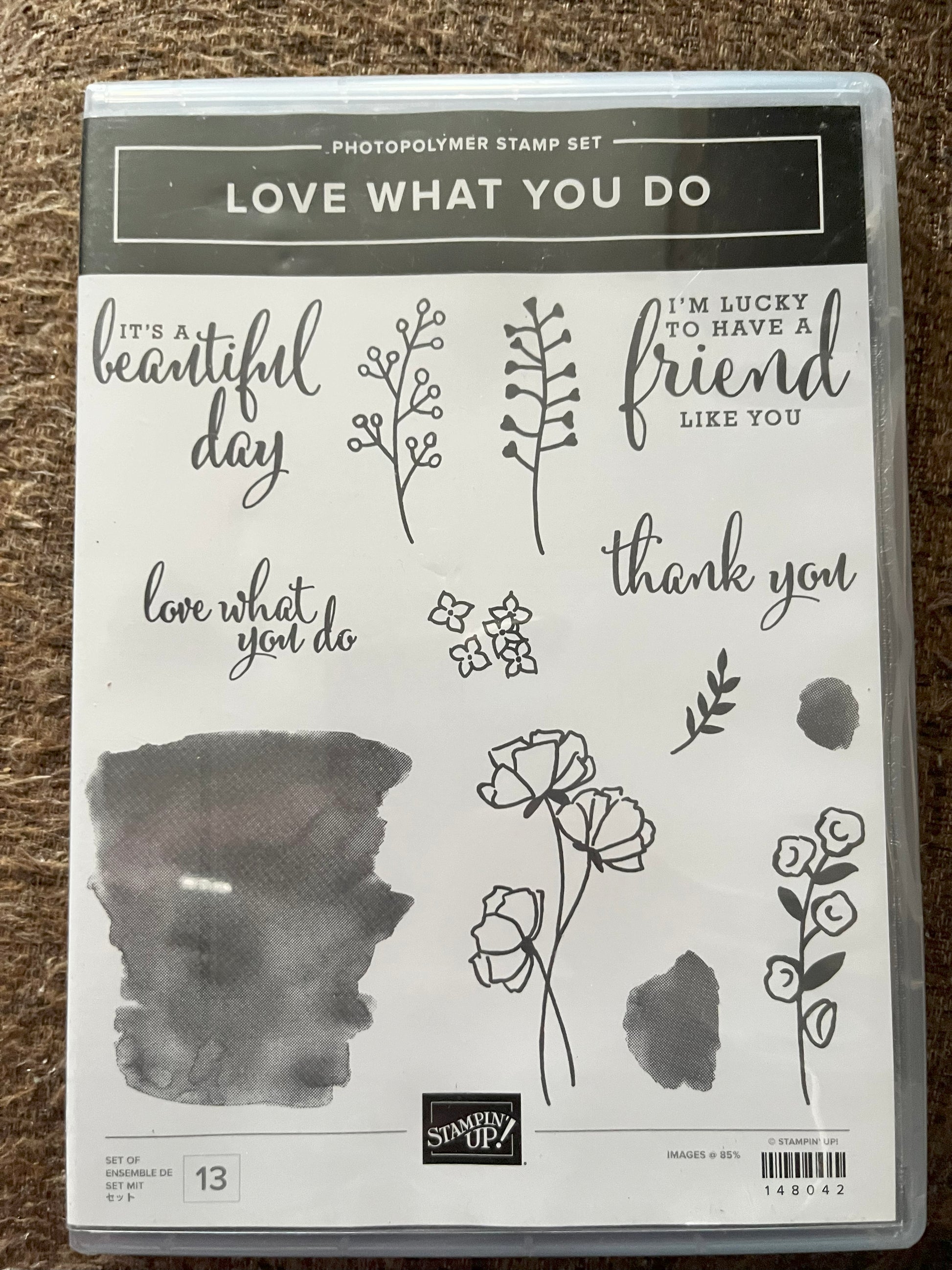 A set of 13 stamps - 2 of the 3 watercolour background stamps can be used as the colour behind the 2 flower sprigs and 4 other picture stamps. Also includes 4 sentiment stamps.
