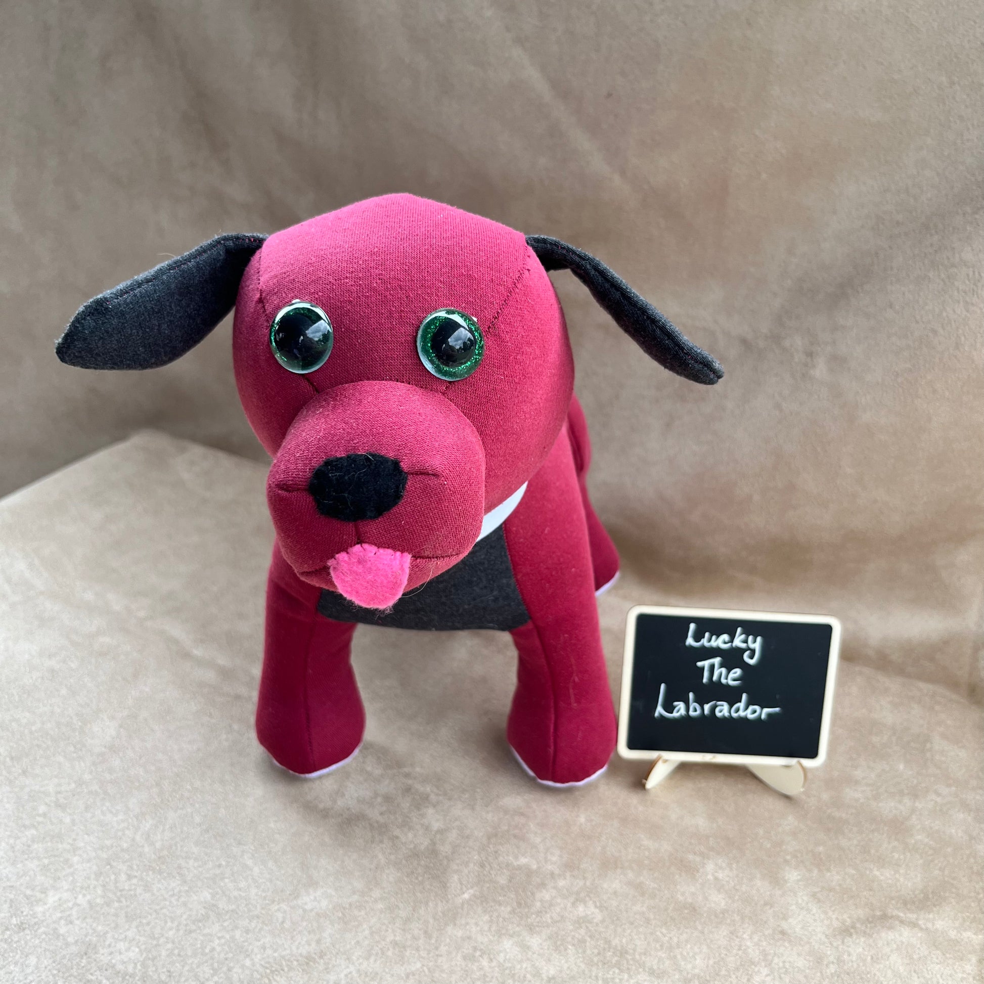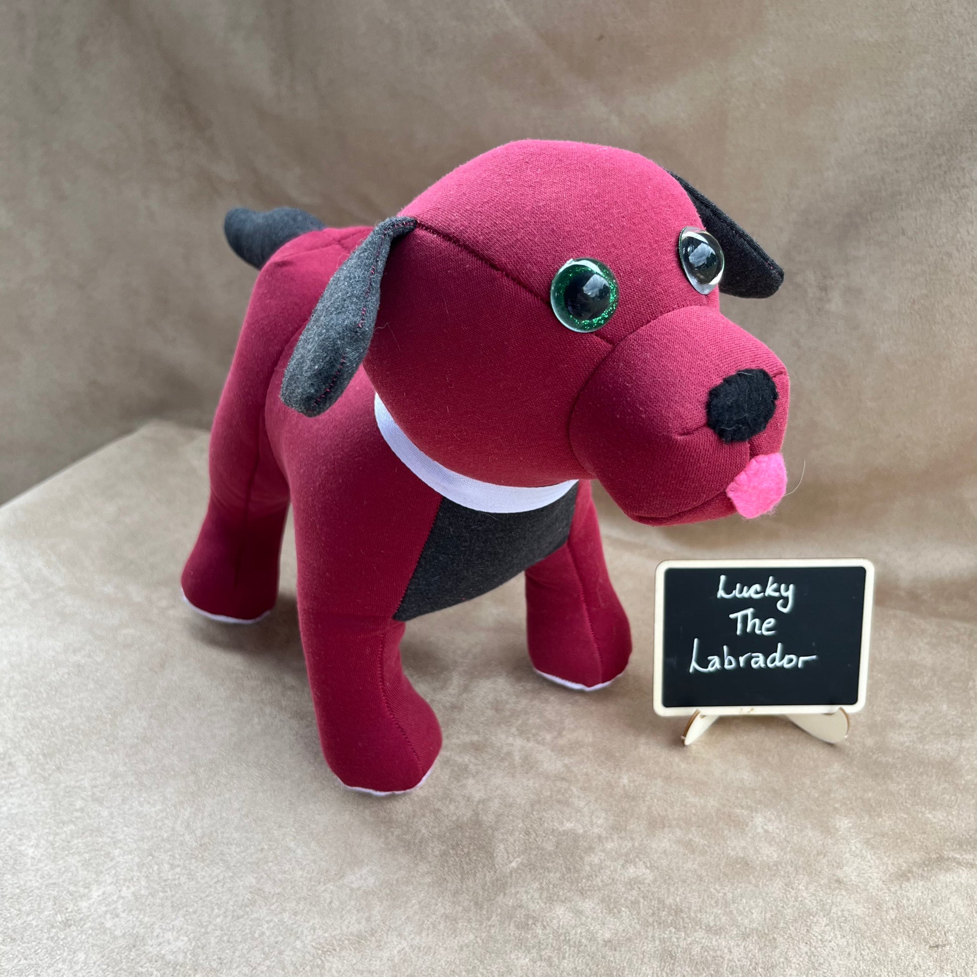 Lucky The Labrador is made using a pattern from Funky Friends Factory.
