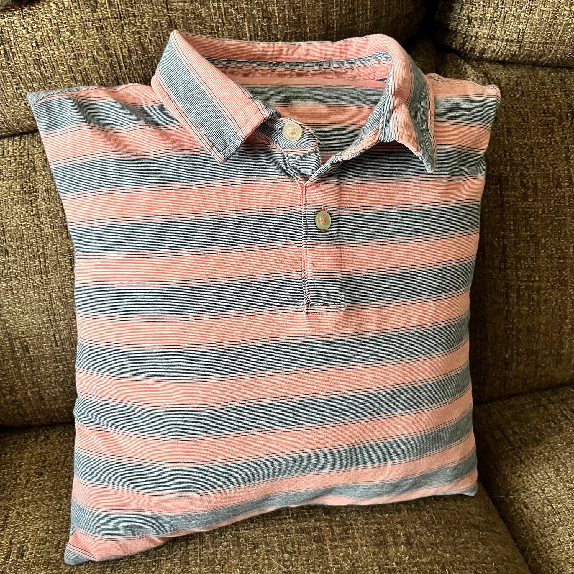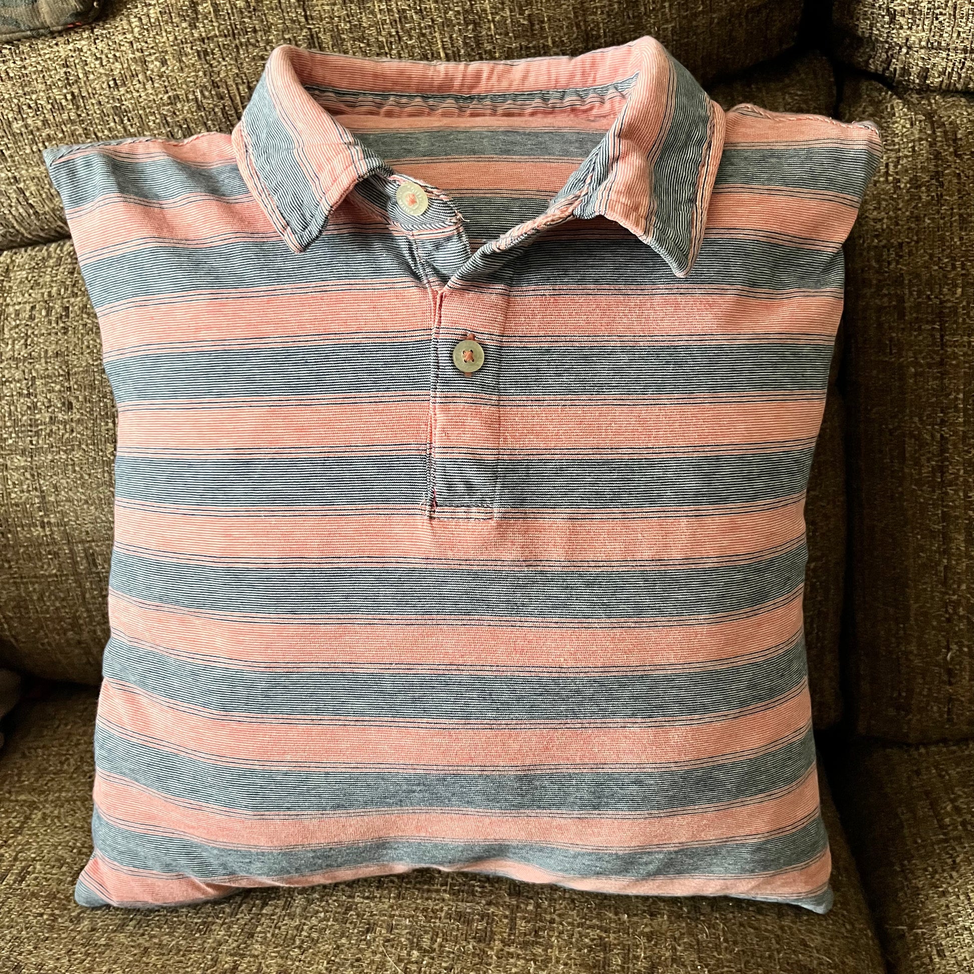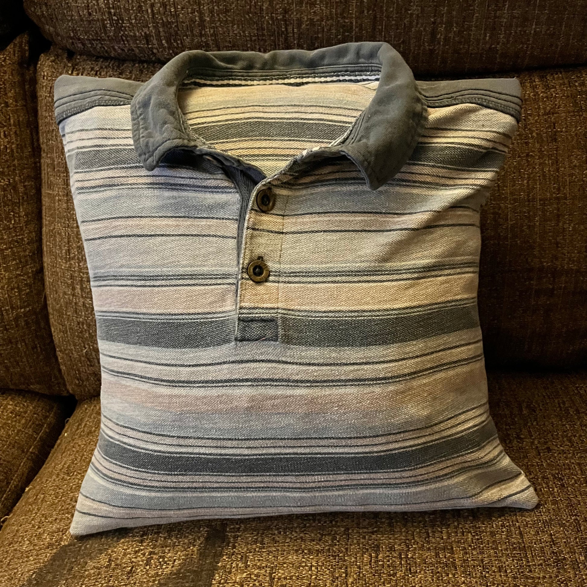 The covers will be constructed for the largest cushion size possible unless instructed otherwise. I can usually get up to a 16" cushion cover (18" insert) from a small to large shirt, and an 18" cover (20" insert) from an XL and above shirt.