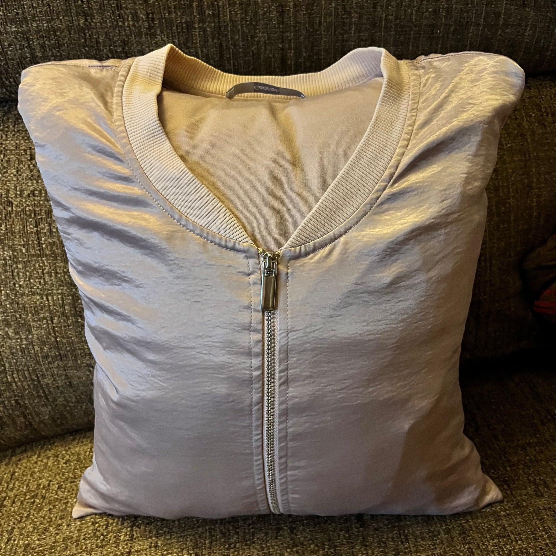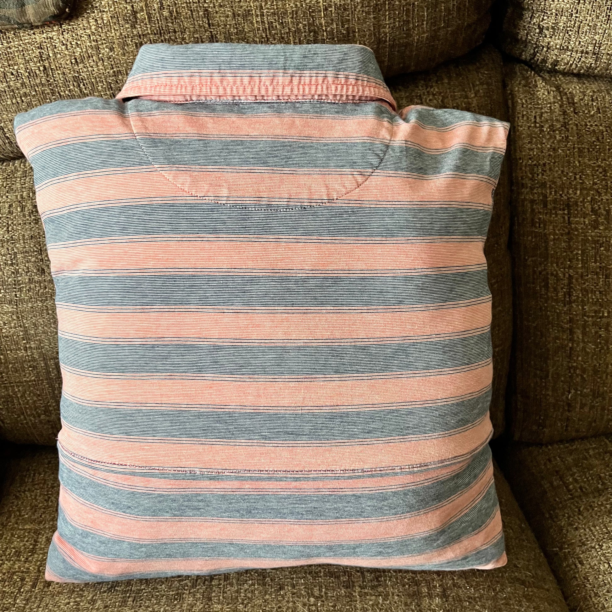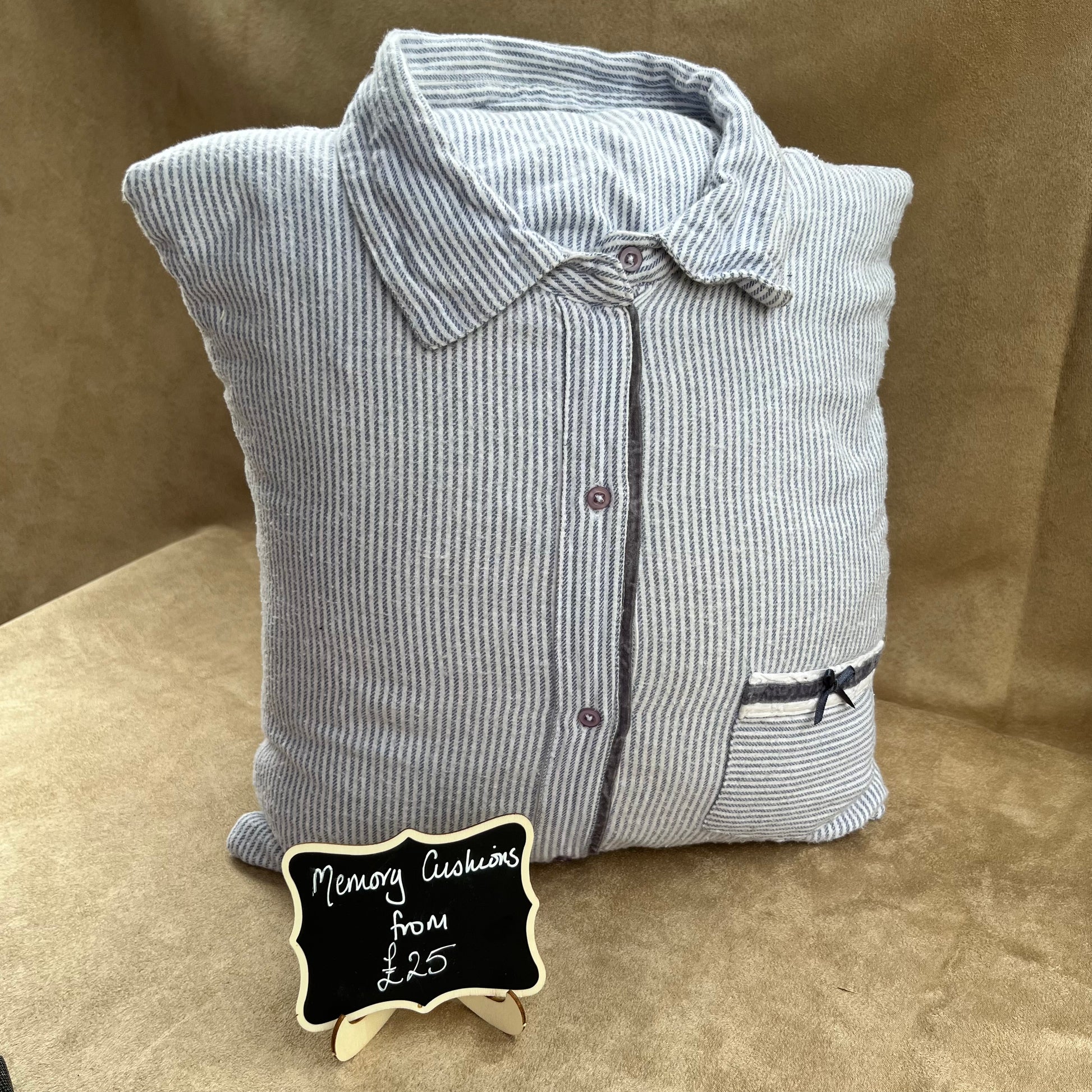 Our cushion covers can be made from the clothes of a loved one no longer here, or clothing from a special occasion. The Shirt Cover is an envelope style cushion cover which eliminates the need for a zip, although if the clothing item has a zipped front already, as the silky one in the photos, then I will utilise that to allow the cushion pad to be inserted and removed to allow for washing.