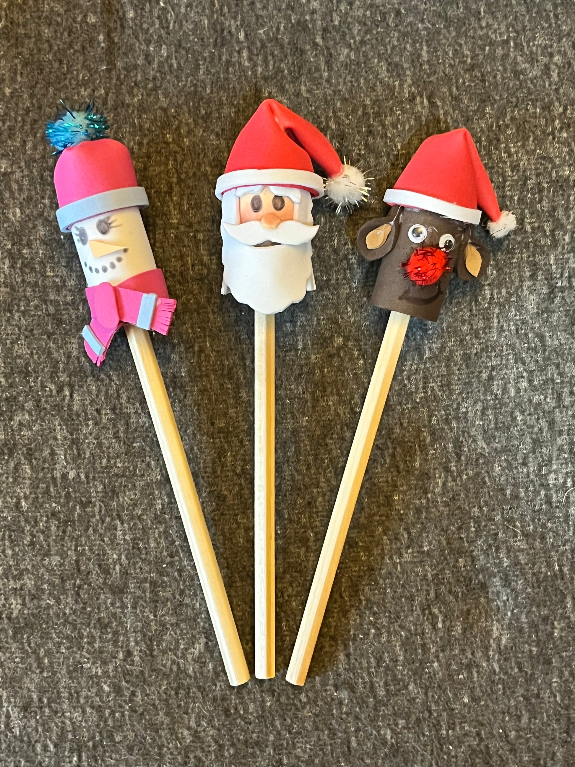 These handmade Toppers feature a Rolled Christmas Character complete with wiggly eyes.