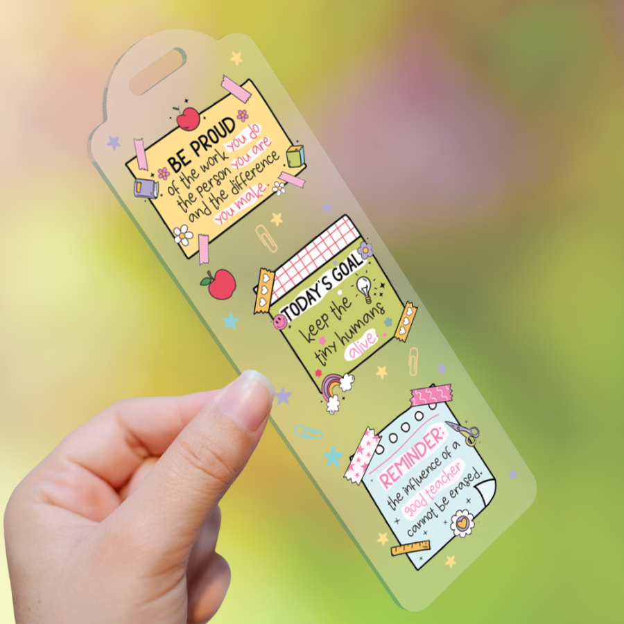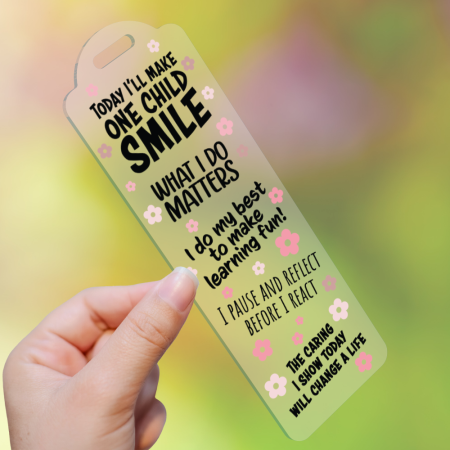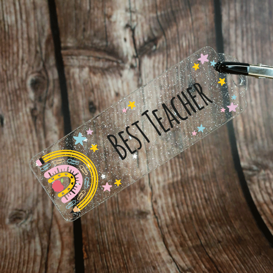 Each of these Bookmarks features a Teacher inspired design on an acrylic base with a chord tassel. You have a choice of three acrylic bases - clear; frosted; & clear with silver stars & glitter.