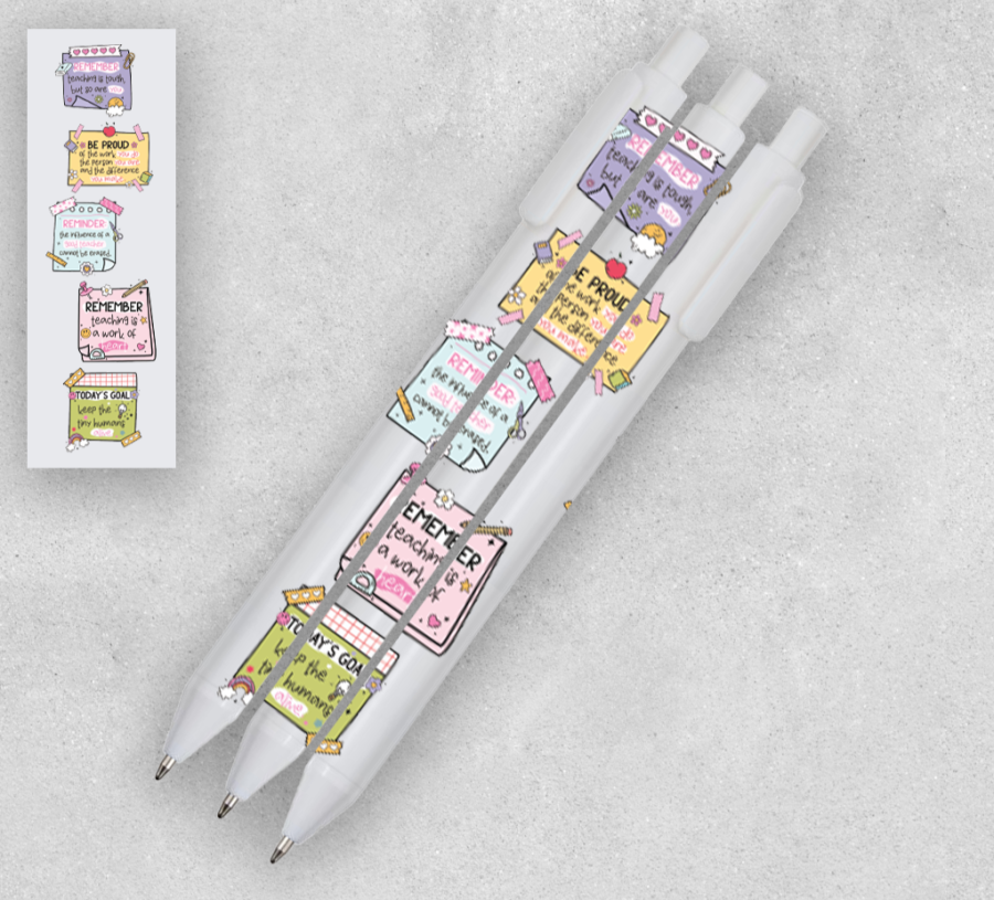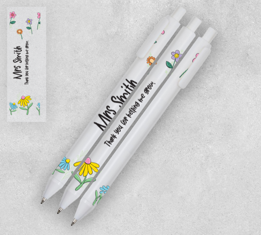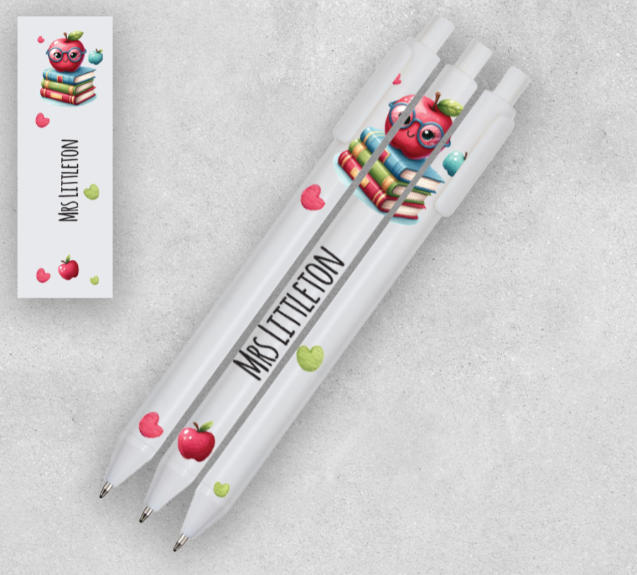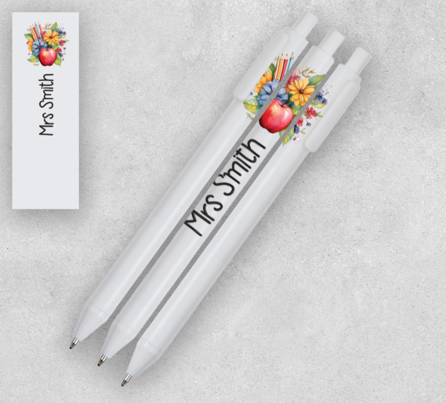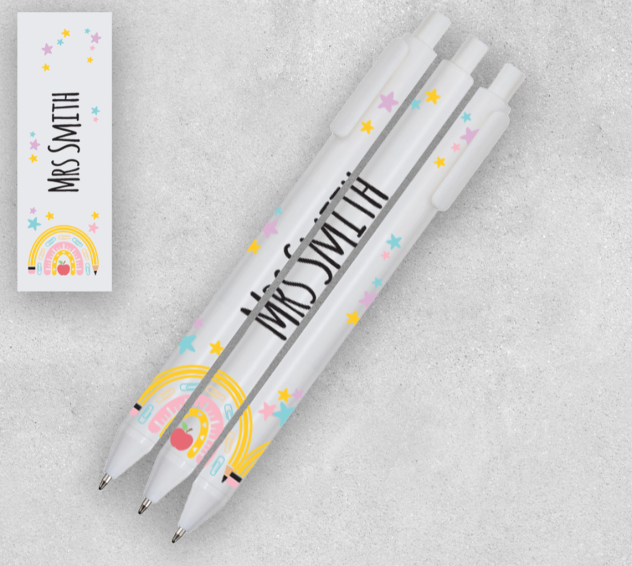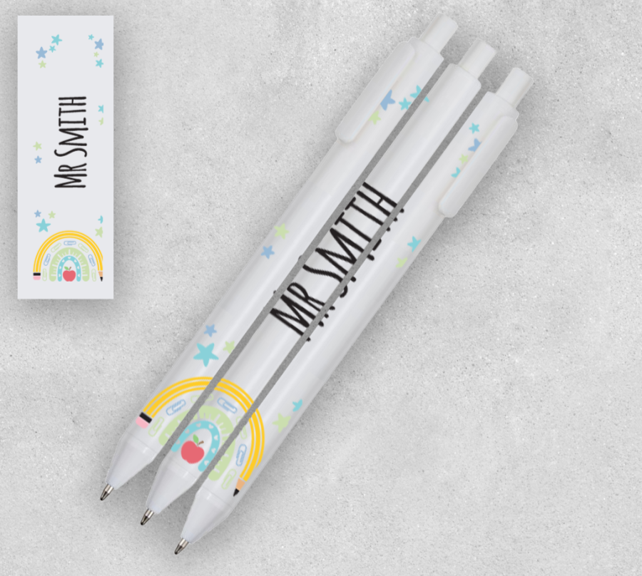 Each of these Pens features a Teacher inspired design on a choice of plain white plastic or glittered metal barrel in Gold, Silver, Rose Gold or Grey.
